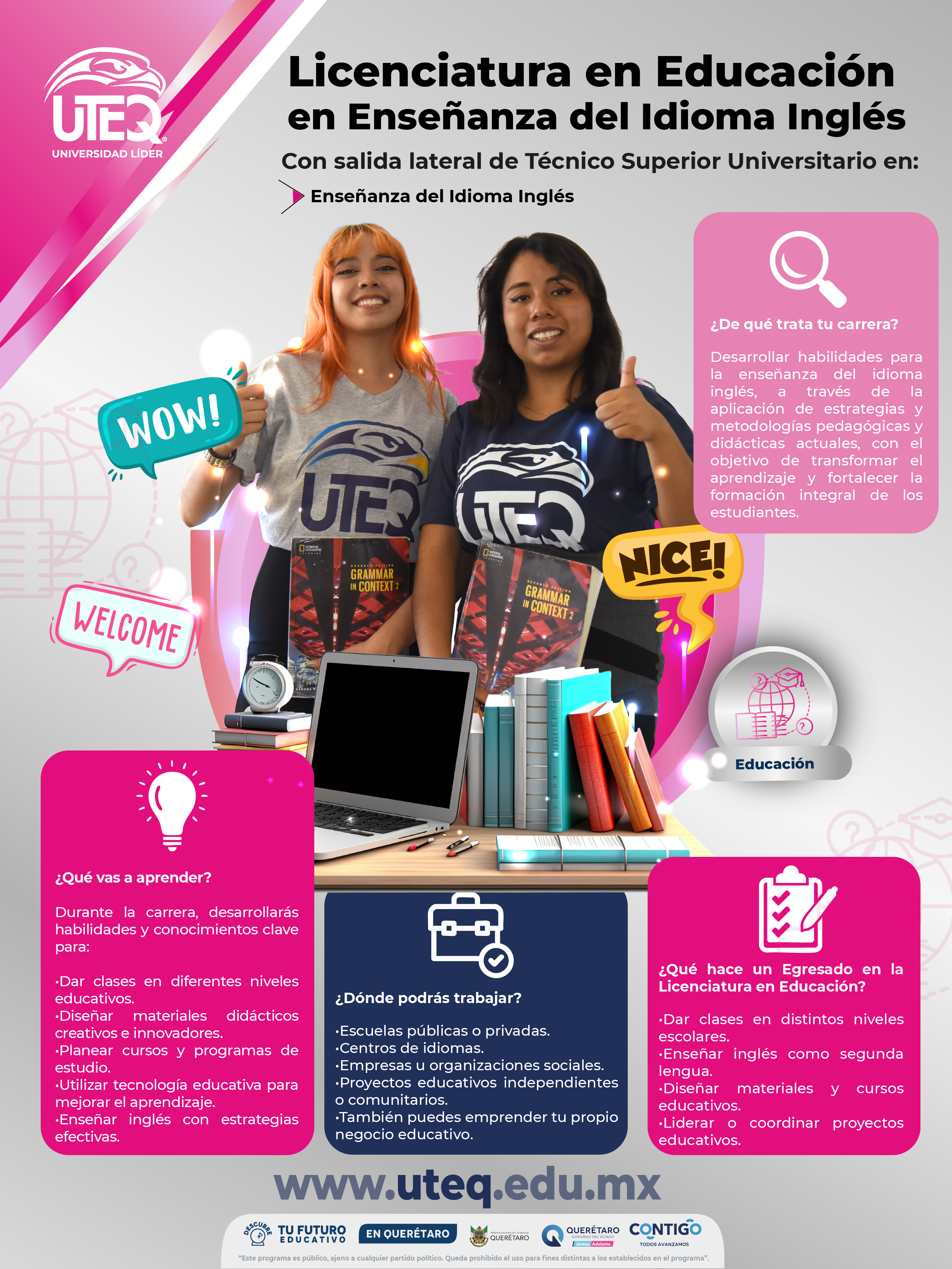 Enseñar el idioma inglés mediante el dominio del nivel B1 del MCER (Marco de Referencia Europeo) a través de los diferentes métodos, enfoques, técnicas y estrategias de la enseñanza del inglés para desarrollar las distintas habilidades lingüísticas que permitan desenvolverse en ámbitos personales, laborales, académicos y sociales con confianza, precisión, fluidez y eficacia.