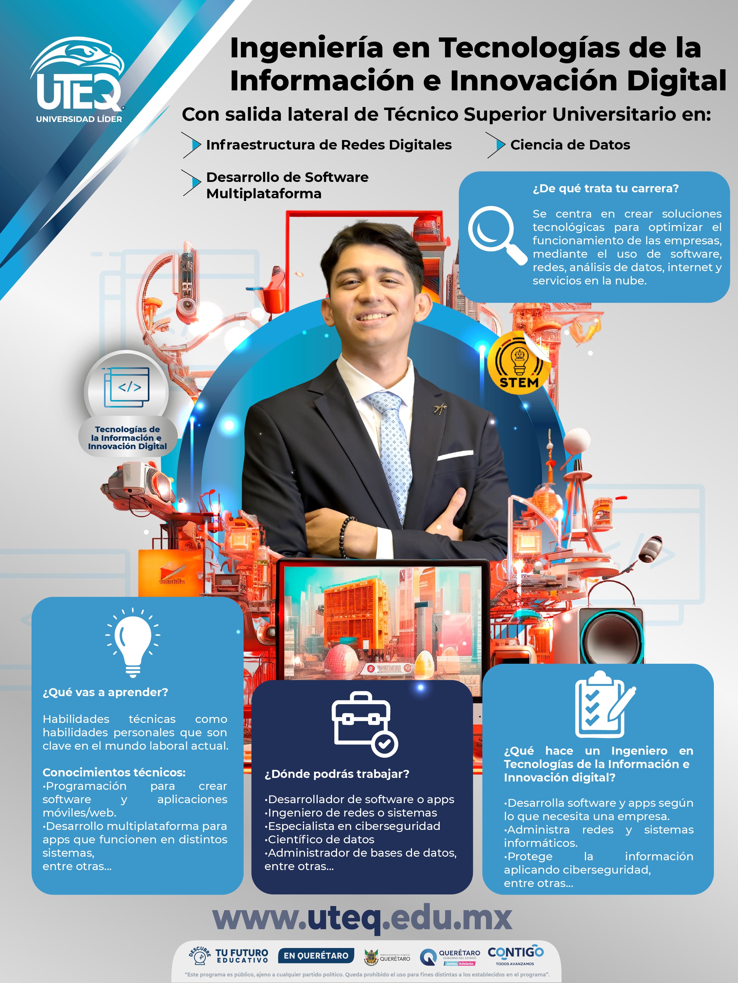 El egresado de Licenciatura en Ingeniería en Tecnologías de la Información e Innovación Digital cuenta con las competencias profesionales necesarias para su desempeño en el campo laboral, en el ámbito local, regional y nacional.