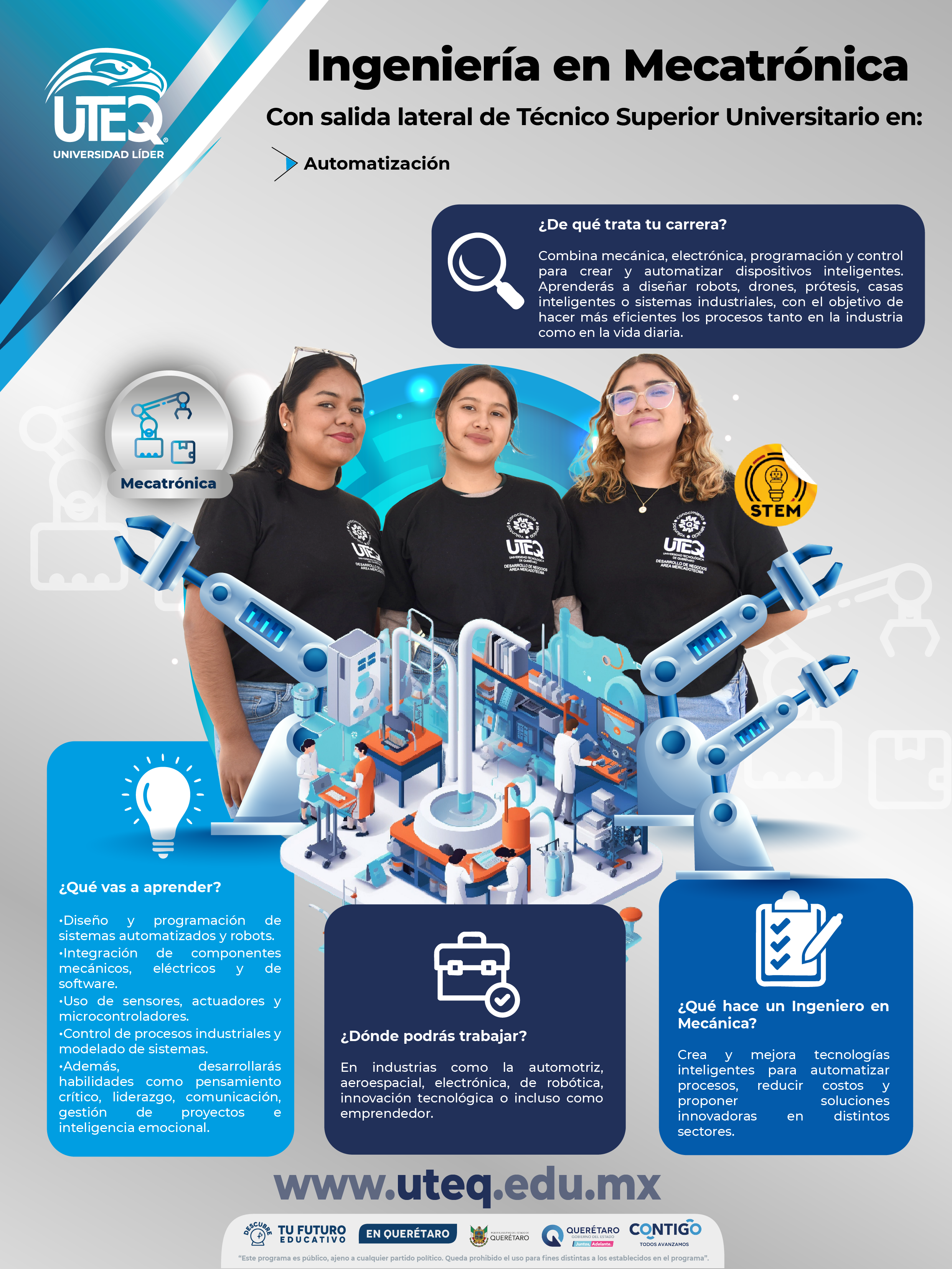El egresado de Ingeniería Mecatrónica cuenta con las competencias profesionales necesarias para su desempeño en el campo laboral, en el ámbito local, regional y nacional.