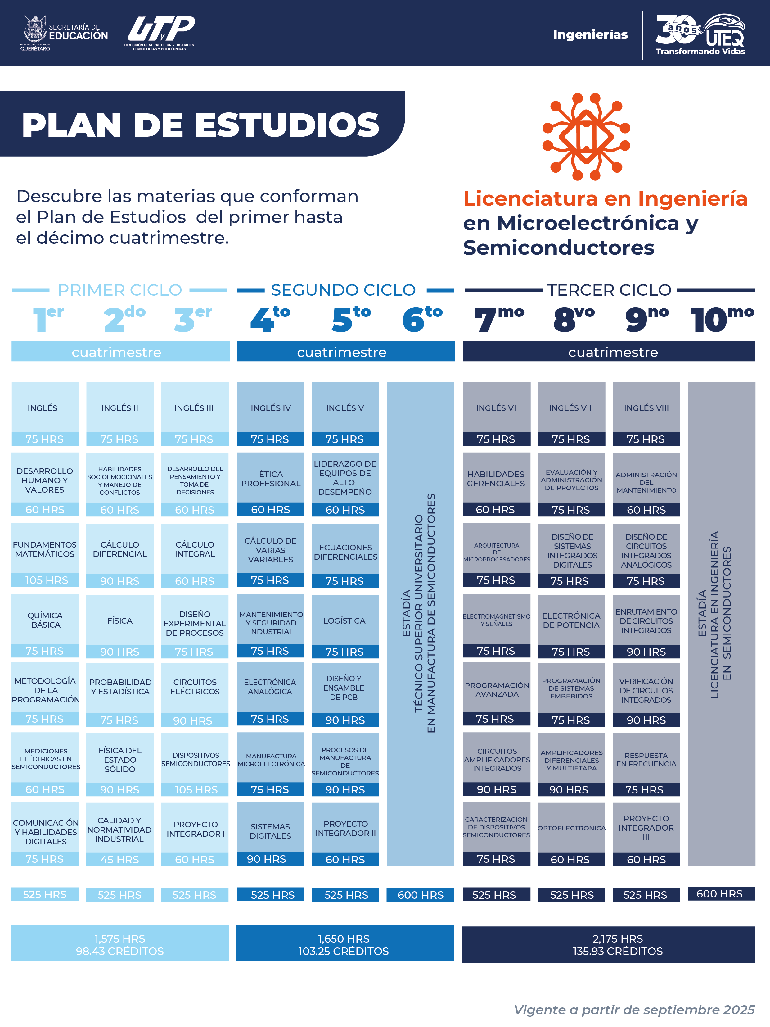 DE LA LICENCIATURA EN INGENIERÍA EN MICROELECTRÓNICA Y SEMICONDUCTORES