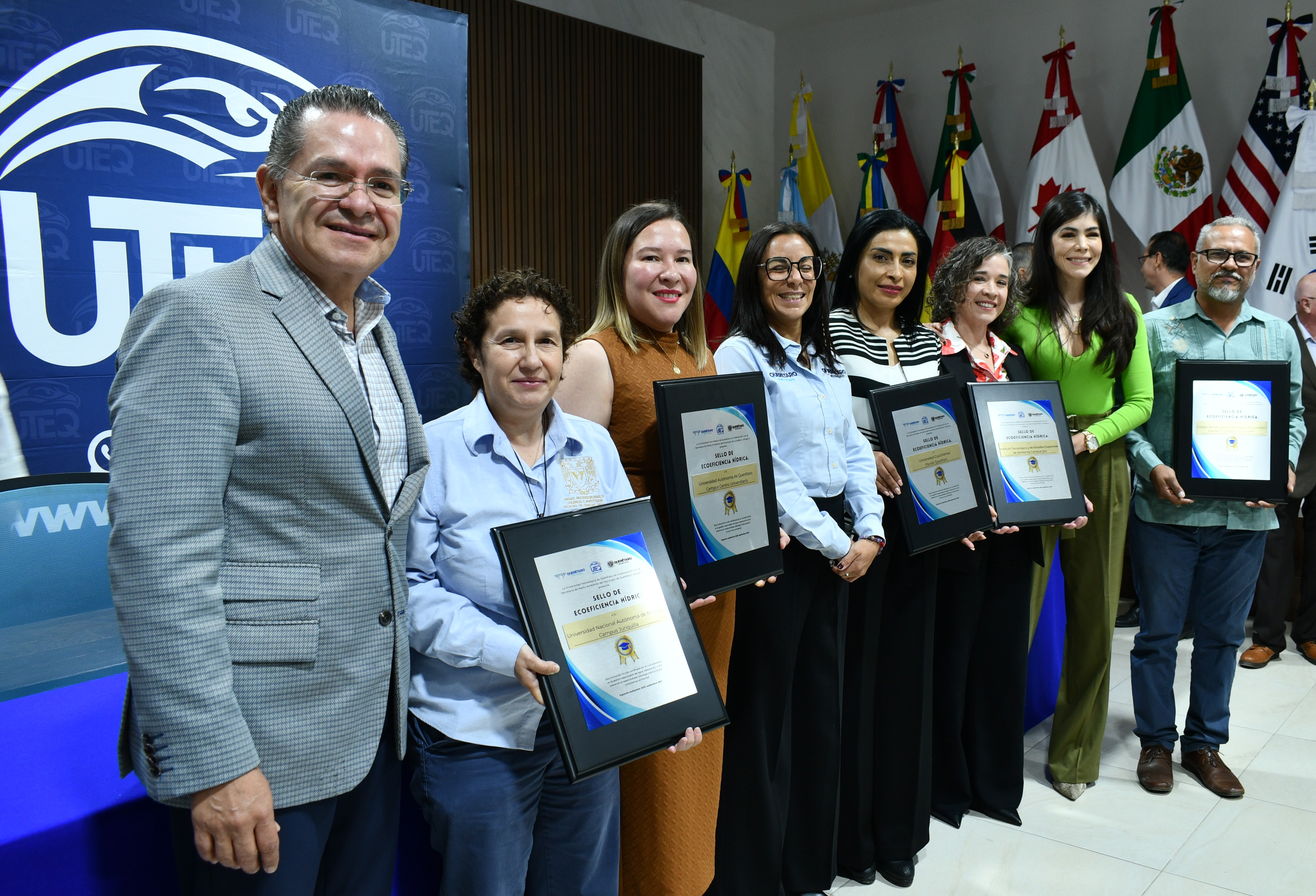 El rector de la Universidad Tecnológica de Querétaro (UTEQ), Luis Fernando Pantoja Amaro, encabezó la entregar de las certificaciones del Sello de Ecoeficiencia Hídrica para Escuelas, reconociendo a las instituciones educativas que cumplieron con los criterios técnicos del programa “Eco Eficiencia Hídrica Querétaro”.