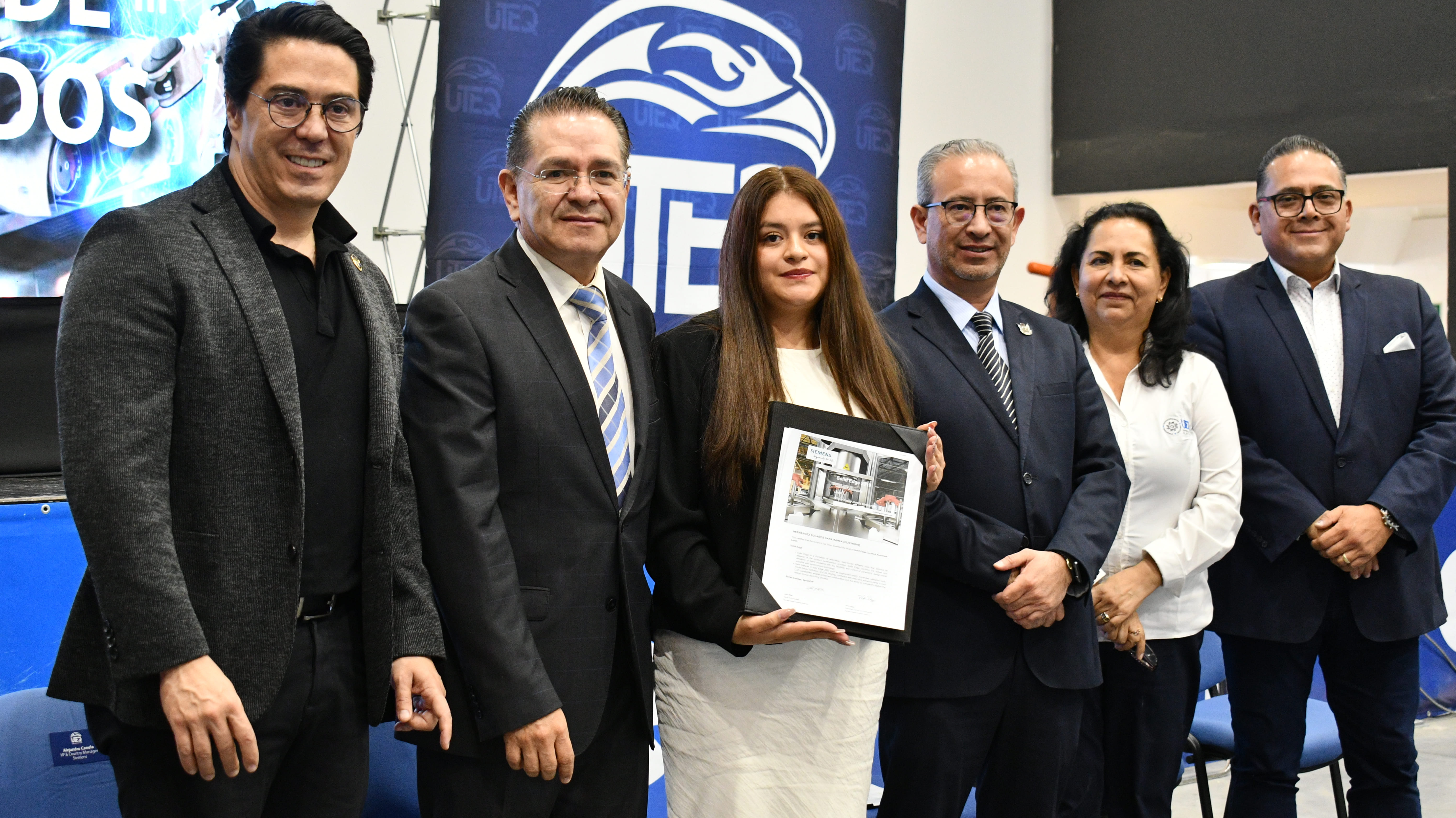 Durante el evento la empresa Siemens entregó reconocimiento a la UTEQ como la institución con mayor número de estudiantes y docentes que cumplen con las capacitaciones y aprobación de exámenes para obtener las certificaciones que brinda esta compañía global con más de 130 años de existencia en México.