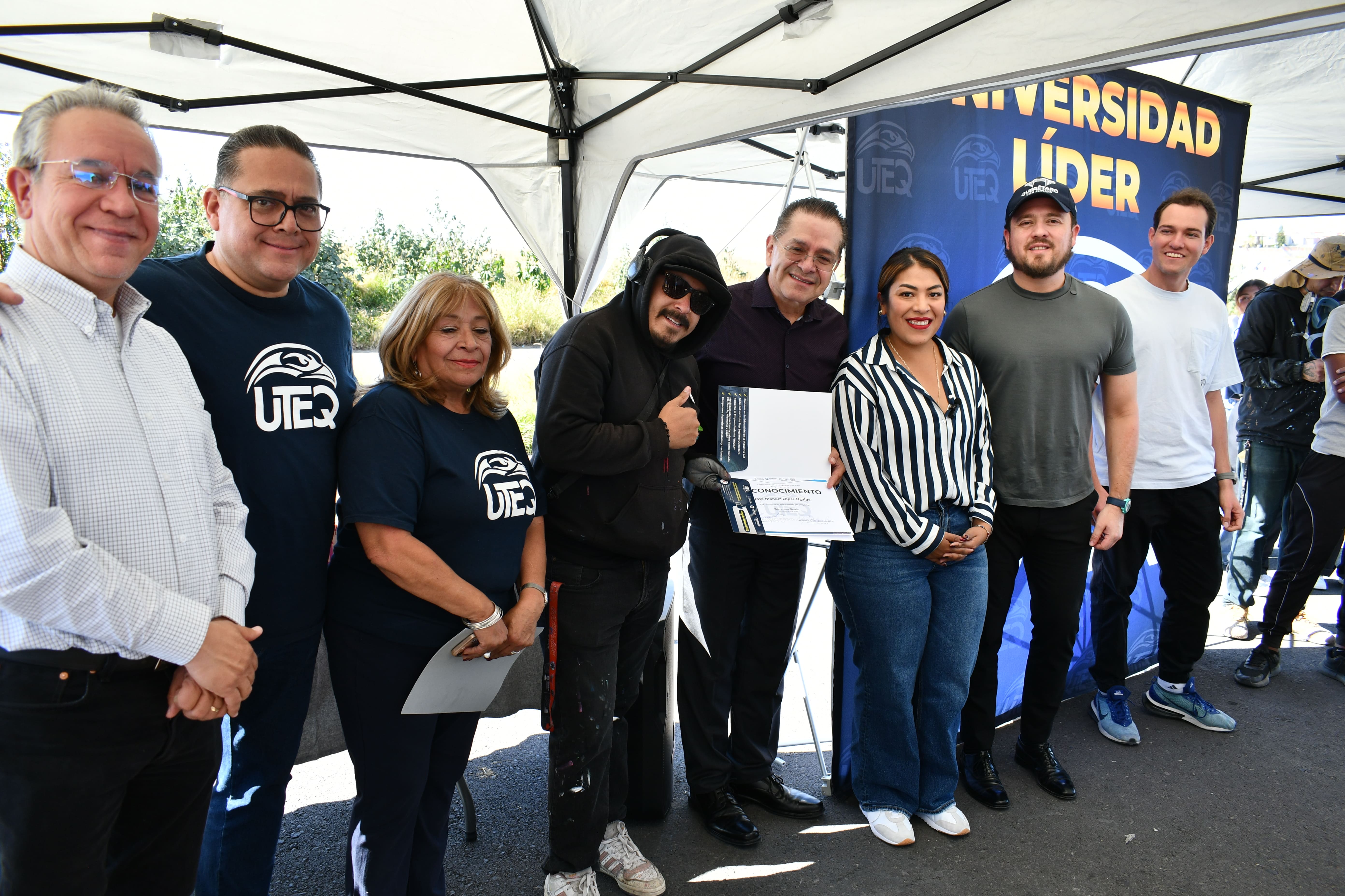 Pantoja Amaro destacó que en esta convocatoria participaron siete artistas urbanos, de los cuales dos son alumnos de la UTEQ, encargados de crear las obras, algunas de las cuales incorporan realidad aumentada, lo que permite a los espectadores interactuar con los mensajes y fortalecer su vínculo con el entorno universitario.