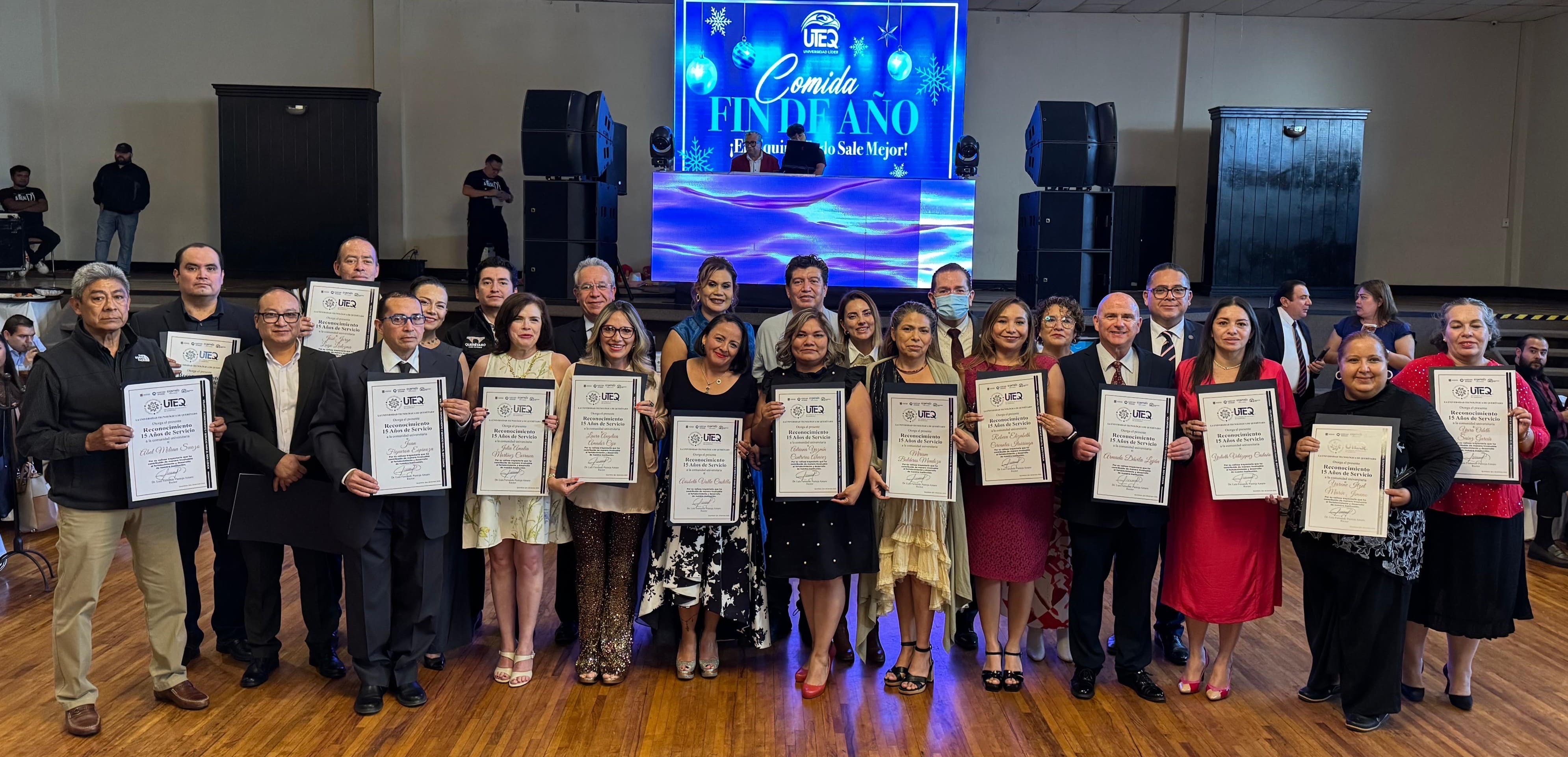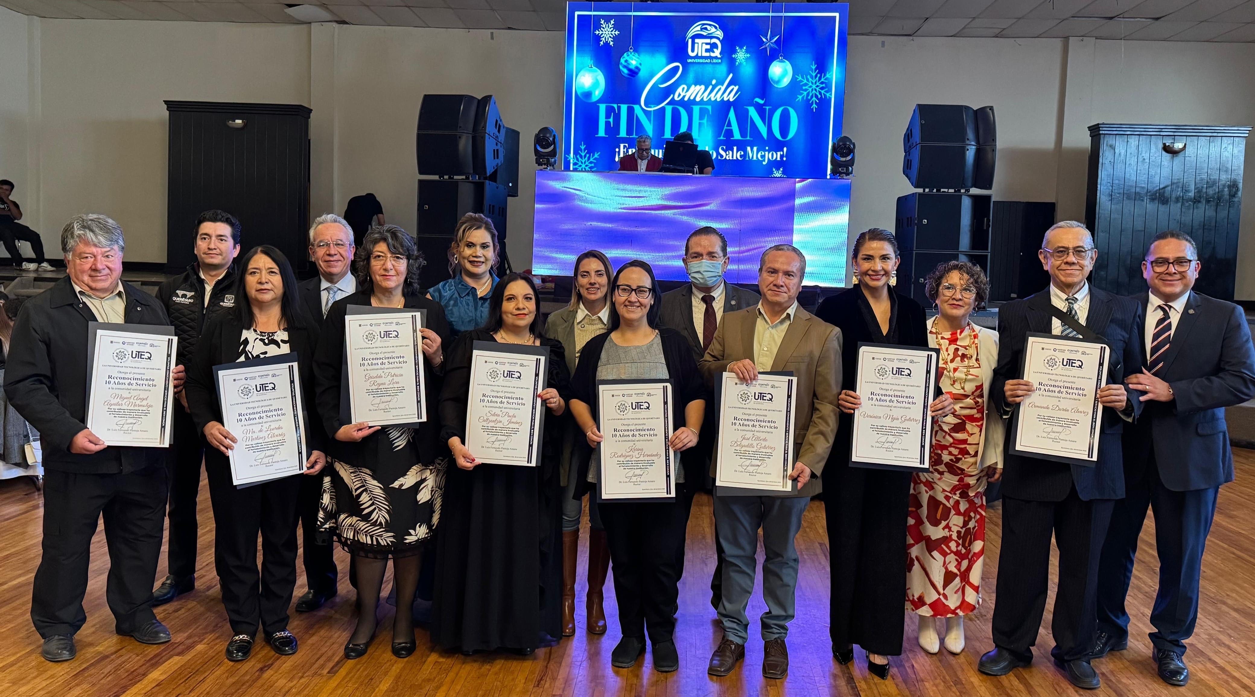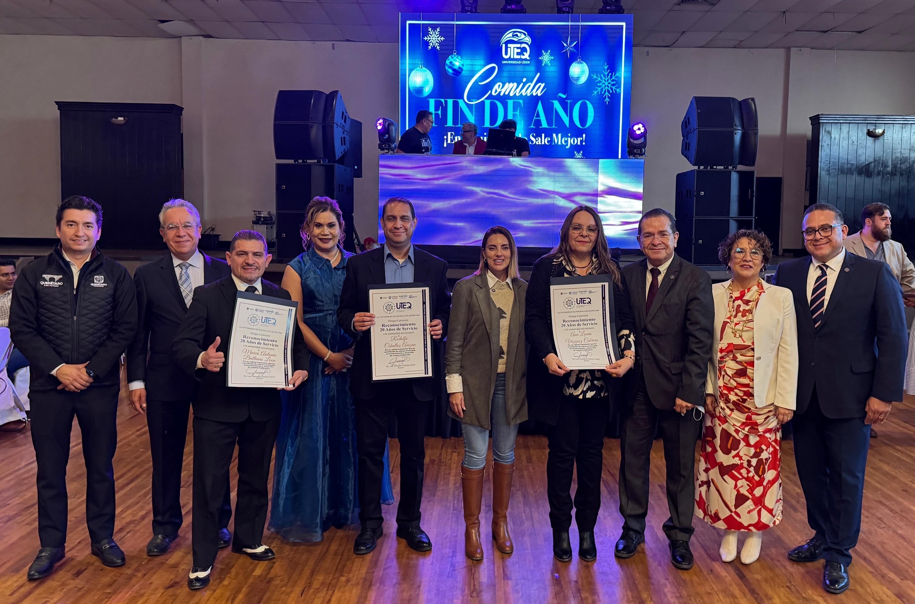 El rector de la Universidad Tecnológica de Querétaro (UTEQ), Luis Fernando Pantoja Amaro, entregó reconocimientos a más de 50 colaboradores, docentes y administrativos, por 10, 15, 20 y 25 años de servicio en la institución. Durante la ceremonia se destacó la relevancia de su trayectoria y aporte al acompañamiento académico, al fortalecimiento de la enseñanza y a la formación de los estudiantes, contribuyendo así a su desarrollo profesional.