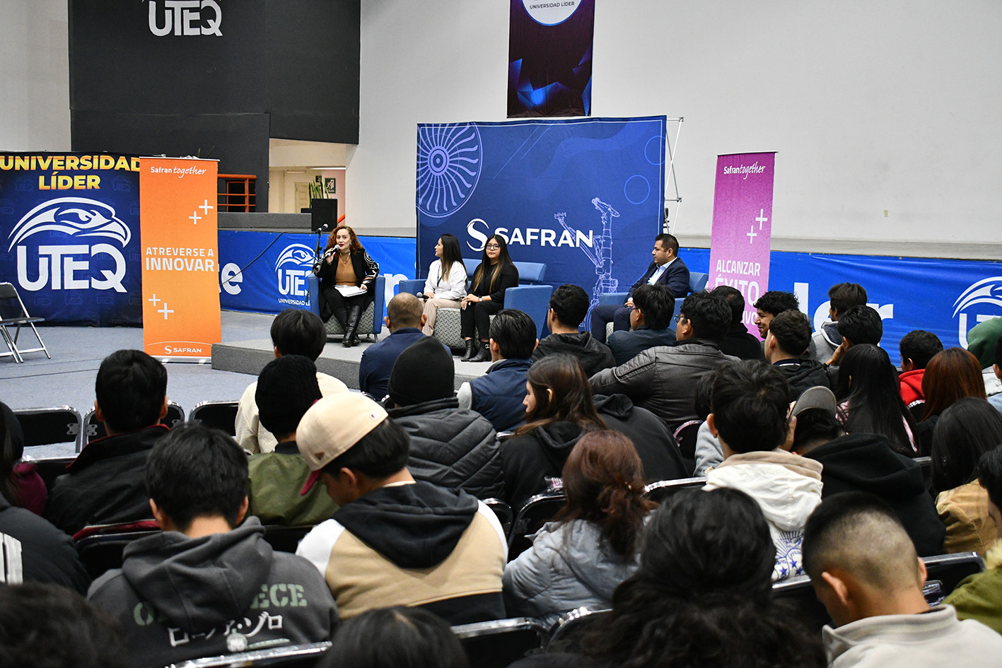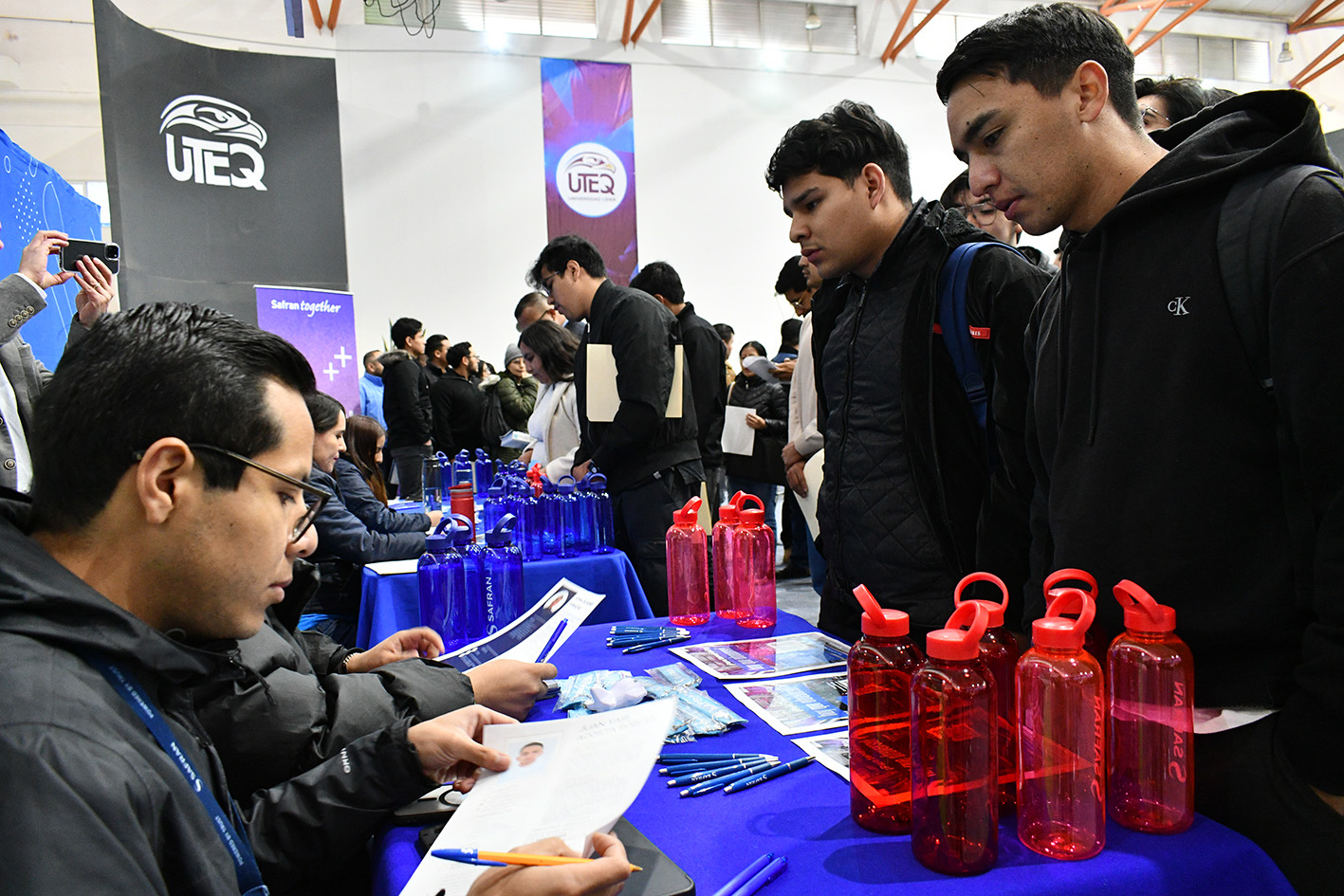 Con el propósito de impulsar la empleabilidad de egresados y estudiantes, la Universidad Tecnológica de Querétaro (UTEQ) realiza en sus instalaciones el “Safran Day”, en colaboración con la empresa multinacional francesa líder en alta tecnología aeronáutica, ofertando más de 260 vacantes dirigidas a perfiles de ingeniería y licenciaturas, a través de un reclutamiento masivo.